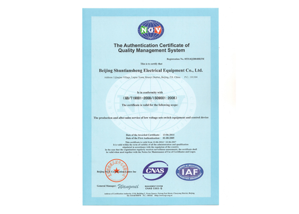 ISO9001-2008質(zhì)量管理體系認(rèn)證證書(shū)-中文