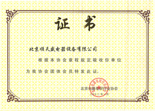 北京電器電材行業(yè)協(xié)會(huì)證書(shū)2002