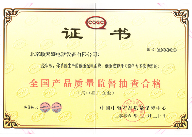 全國(guó)產(chǎn)品質(zhì)量監(jiān)督抽查合格證書(shū)2006